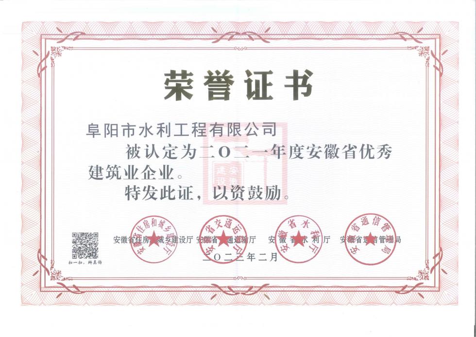 2021年度安徽省優(yōu)秀建筑業(yè)企業(yè)