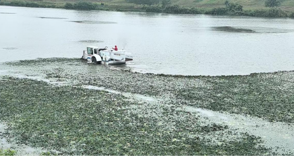 近日,受連續(xù)降雨及上游來水影響,潁河阜陽節(jié)制閘、市茨河鋪閘、七漁河排澇泵站等水利工程上下游,滯留大量水草與雜物,嚴重影響水質(zhì)和河道景觀。為進一步提升河道水域環(huán)境,遏制水生植物蔓延態(tài)勢,自9月下旬起,阜陽佳源水務管理有限公司(阜陽市水利工程有限公司全資子公司)啟動水面漂浮物專項清理行動,組織專業(yè)力量與設備為淮河、泉河、潁河等重點流域“減負”,守護城市水生態(tài)環(huán)境、保障民生安全。